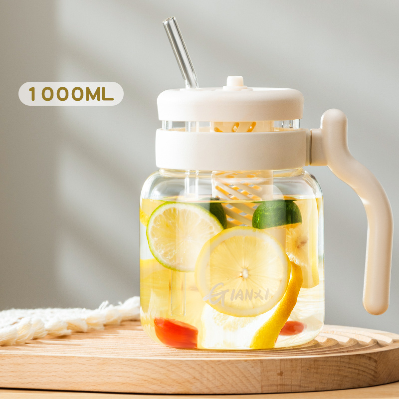 Our 1000ML Glass Tumbler is not just another drinkware; it’s an experience. The high-quality glass construction ensures durability while providing a clean and pure taste that only glass can offer. The included lid and straw make it easy to take your drinks on the go without worrying about spills. The comfortable handle adds an extra layer of convenience, allowing you to carry it with ease wherever you go.