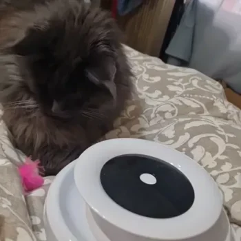 i got this for my lazy tomcat, he's finally up and about chasing after it 😸