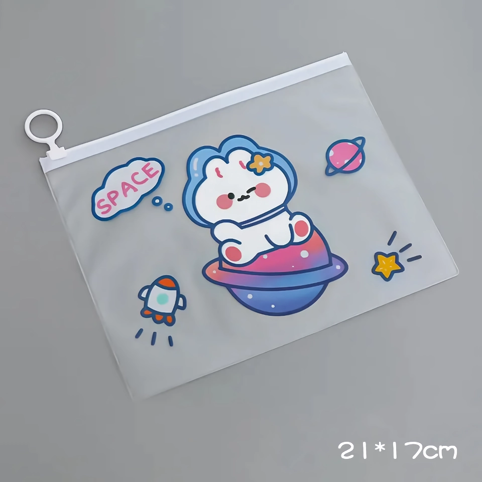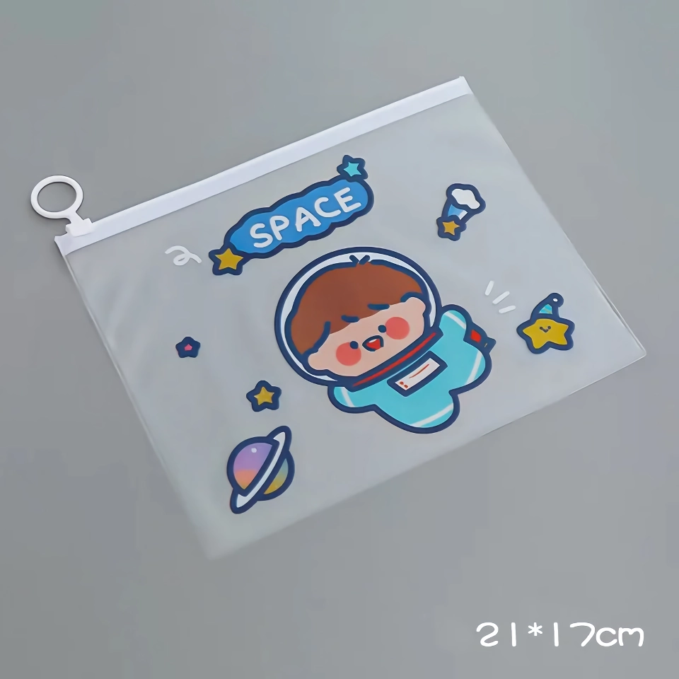 What makes our Cartoon Astronaut File Bags special is the combination of practicality and charm. The durable PVC material ensures they withstand daily use, while the waterproof feature provides added security for your documents. The transparent design saves you time by allowing quick identification of contents, and the fun astronaut design brings a smile to your face every time you use them.