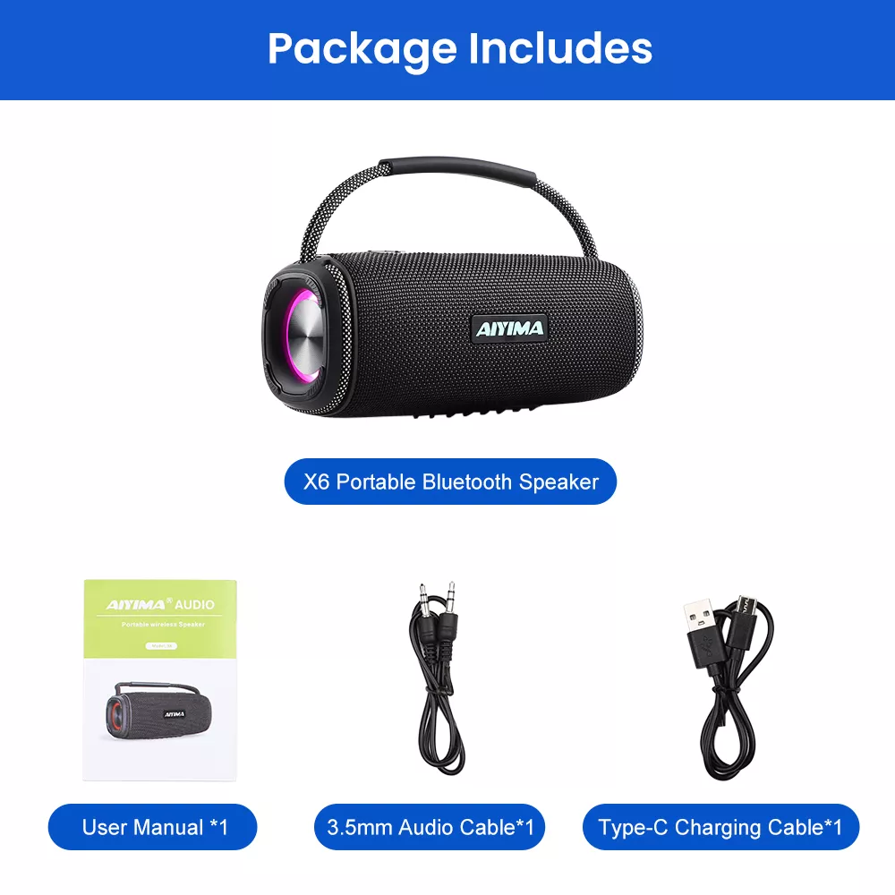• Waterproof IPX6 Rating: Perfect for outdoor use, this speaker can withstand rain, splashes, and spills, making it ideal for beach days, camping trips, and more.