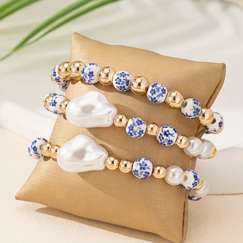 This 3PCS Baroque Pearl Bracelet Set brings together fashion and timeless elegance, making it the perfect accessory for any woman who loves to add a touch of sophistication to her look. Whether you’re attending a wedding, heading to work, or enjoying a casual day out, these bracelets effortlessly elevate your ensemble. The beautiful combination of imitation pearls and blue and white porcelain beads creates a striking yet understated look, making them suitable for any occasion.
