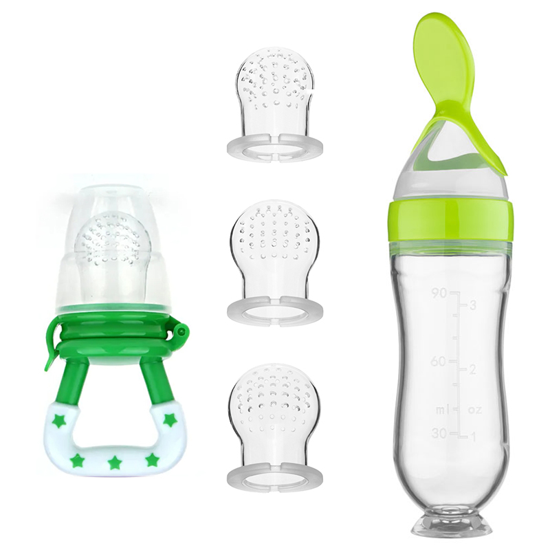 Introducing the 5pcs Silicone Squeezing Feeding Bottle Spoon Feeder, the ultimate tool for feeding your newborn baby with ease and precision. Designed with both baby and parent in mind, this feeder ensures a smooth and mess-free feeding experience. Whether you’re introducing solid foods or transitioning from breastfeeding, this feeding bottle spoon is an essential addition to your baby’s tableware collection.