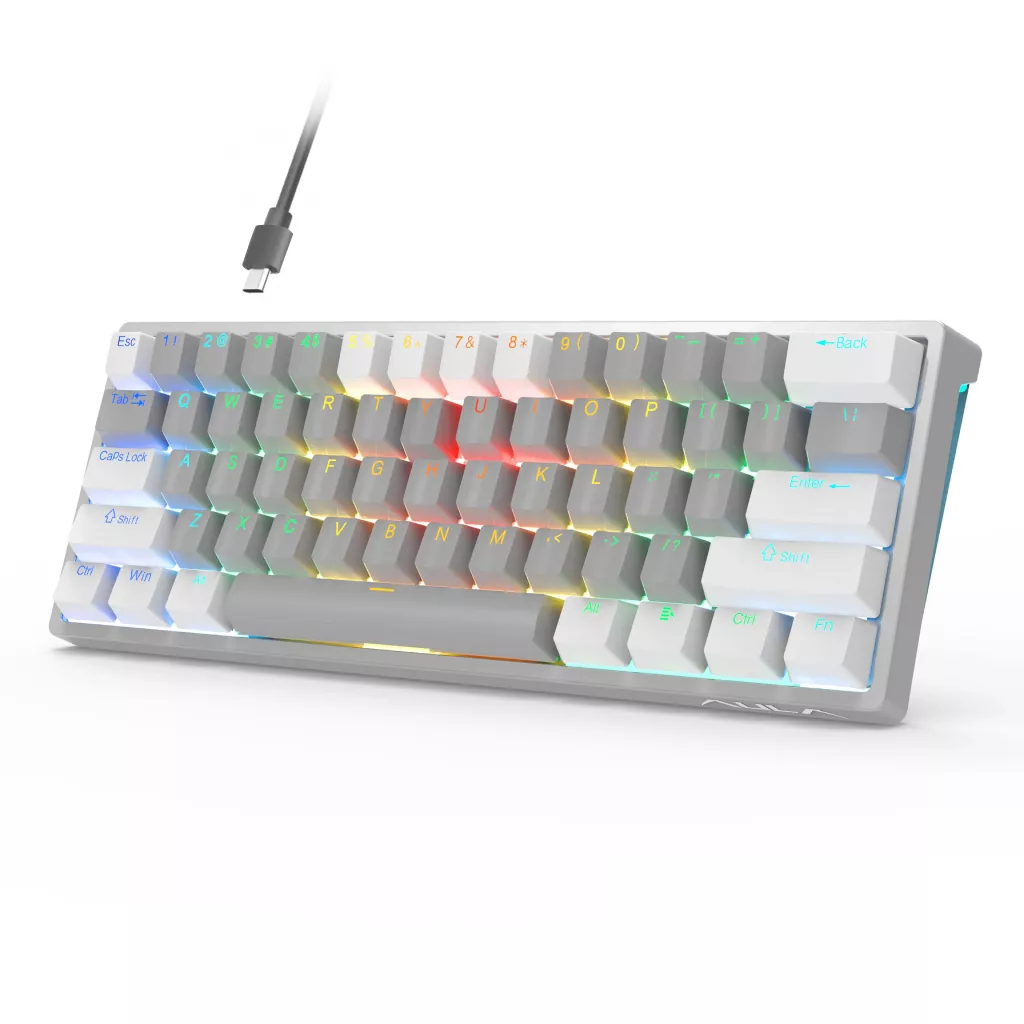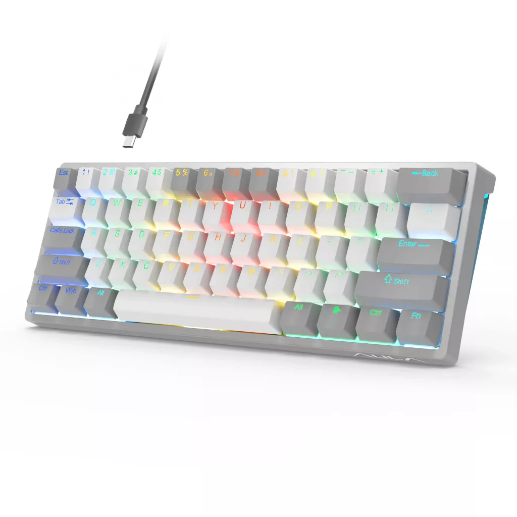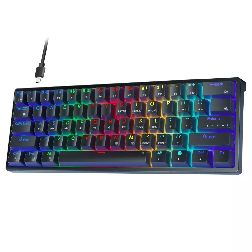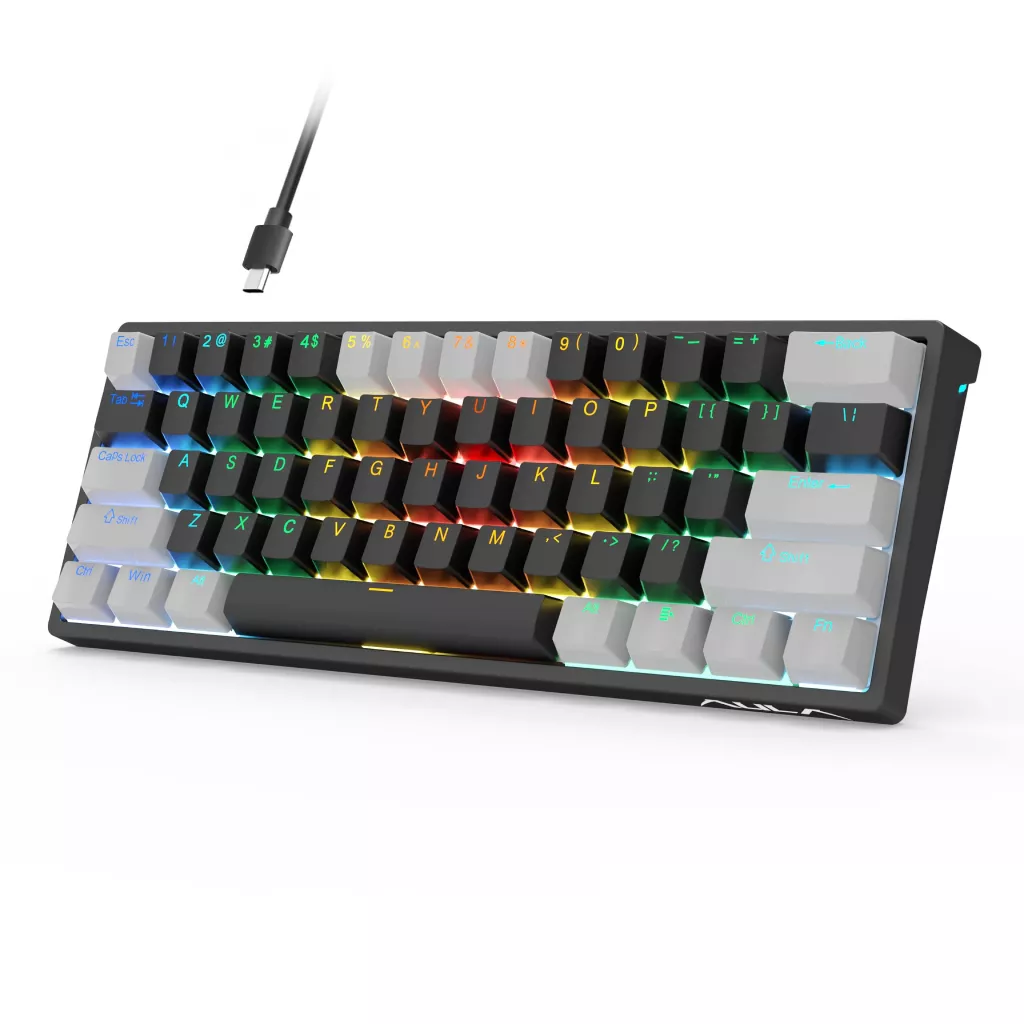 61-Key Wired Mechanical Gaming Keyboard with RGB Backlight and Hot-Swappable Switches