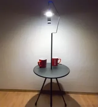Adjustable Ultralight Portable Camping Round Table with Light Stand