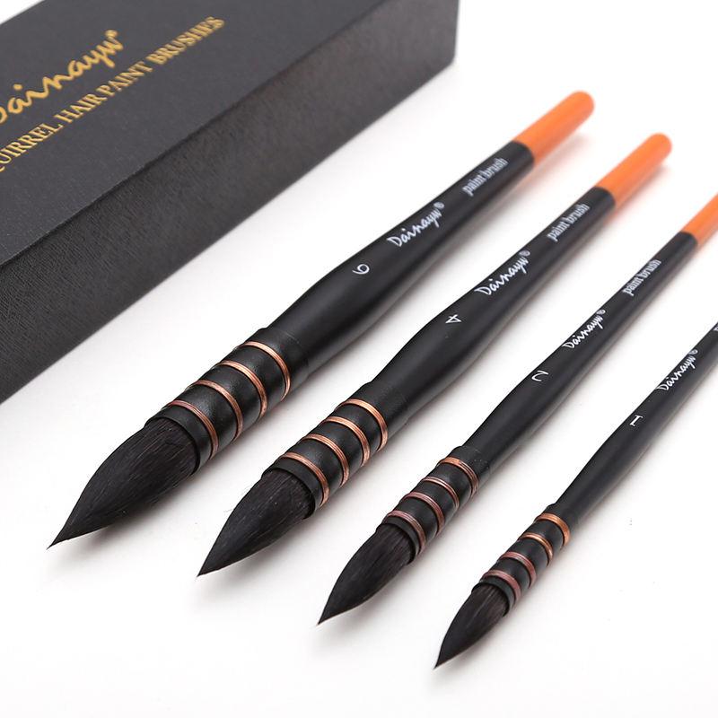 4-Piece Squirrel & Horse Hair Watercolor Brush Set for Artistic Painting