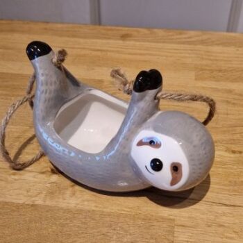 I recently purchased this cute little gem of a planter as a gift for my wife who adores quirky things. She was over the moon with it! The ceramic material feels sturdy yet retains an elegant look - quite impressive indeed. It hangs beautifully on our patio, adding charm to our outdoor space.