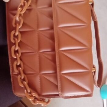 I'm absolutely in love with this bag! The plaid pattern is so chic and the chain trim adds a perfect touch of edg. It's spacious enough to carry all my essentials, yet not too bulky.