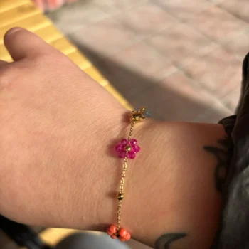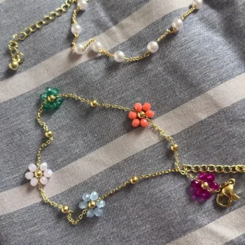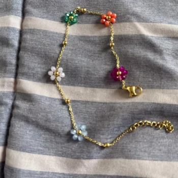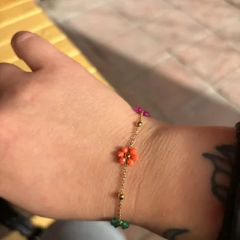 omg!!! this bracelet is everything!! the beaded flowers are so cute and colourful...it goes perfectly with all my outfits 🥰 plus, it’s made from stainless steel which means no worries about tarnishing or allergies..so happy with this purchase 💖💖