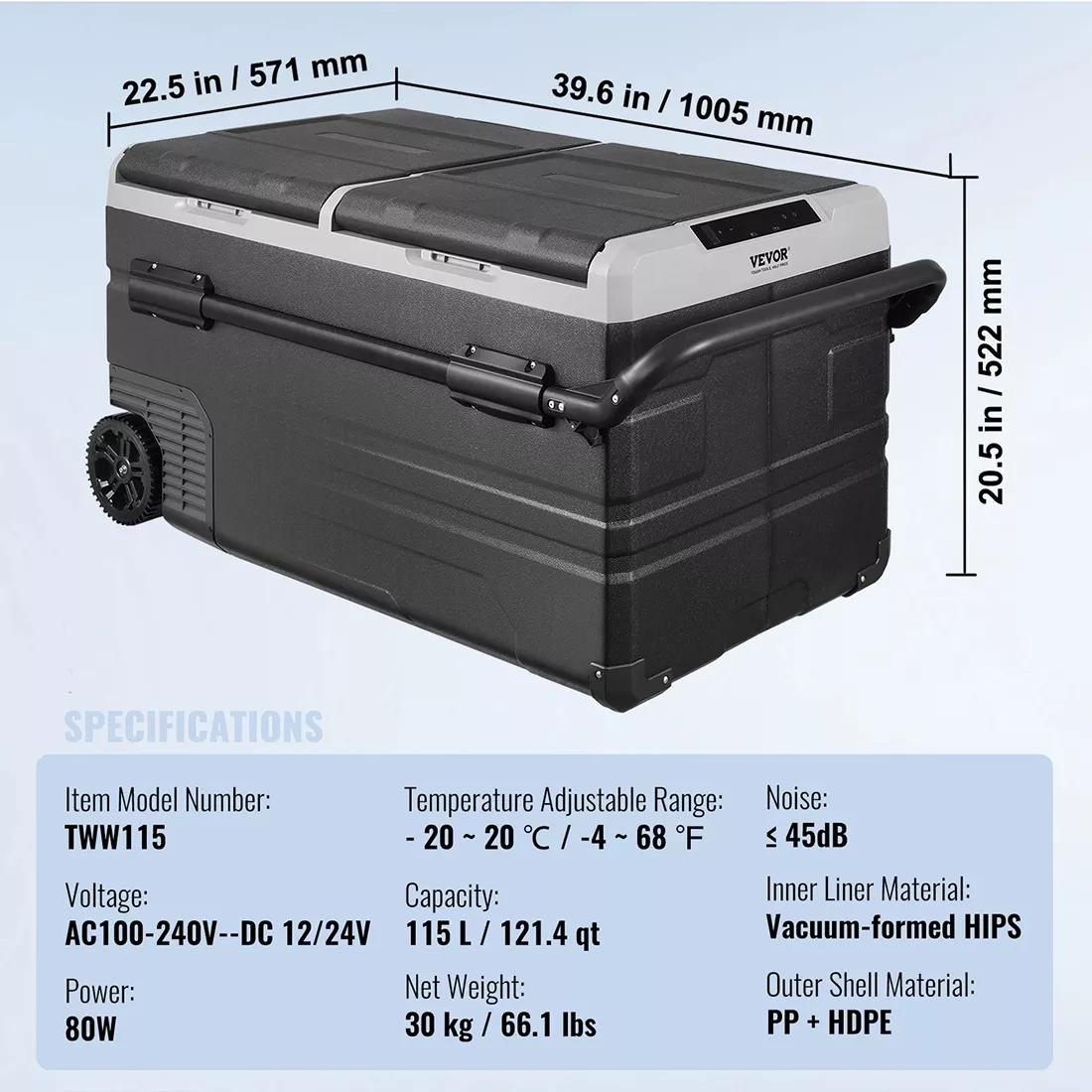 When it comes to keeping your food and drinks fresh while on the move, this dual zone portable car refrigerator is your ultimate companion. Whether you’re on a road trip, camping, boating, or simply need extra fridge space during a long drive, this 115L fridge is designed to make your life easier. With its powerful compressor and advanced cooling system, it rapidly reaches temperatures as low as -4°F, ensuring that your items stay perfectly chilled or frozen, no matter where you are.