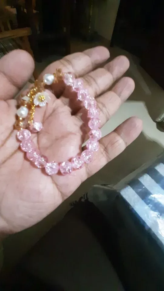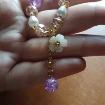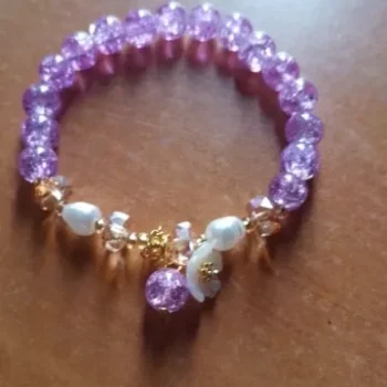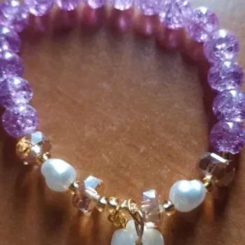 I’m not much of a jewelry guy but had to buy something special for our anniversary. Stumbled upon this bracelet with purple beads and a white flower (wife loves flowers) and she loved it!