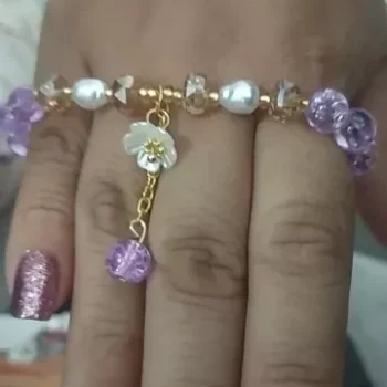 What sets this bracelet apart is its unique combination of durability and delicate aesthetic appeal. The use of premium materials ensures longevity, while the elastic adjustable design guarantees a perfect fit for anyone. Its enchanting purple beads and white flower charm provide a touch of nature-inspired beauty that makes it not just a piece of jewelry, but a piece of art.