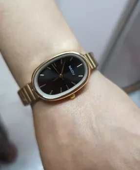 Our watch distinguishes itself with its oval design, which is less common in the world of wristwatches. This shape not only stands out for its beauty but also provides a comfortable fit that looks great on smaller wrists. The sleek stainless steel construction adds a touch of luxury without being overly ostentatious.