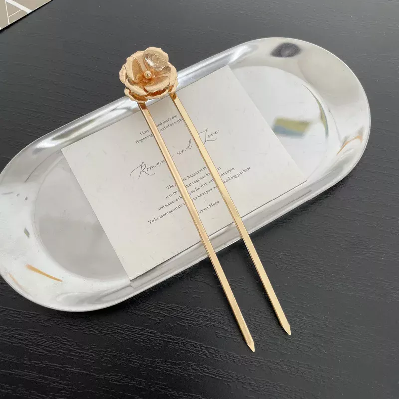 This geometric U-shaped hairpin isn’t just a functional accessory – it’s a statement piece that will elevate your entire hairstyle. The delicate flower design adds a touch of elegance, making it perfect for weddings, parties, or simply adding a touch of charm to your everyday look. With its sleek, shiny finish and sturdy construction, it ensures your hair stays in place all day without any discomfort.