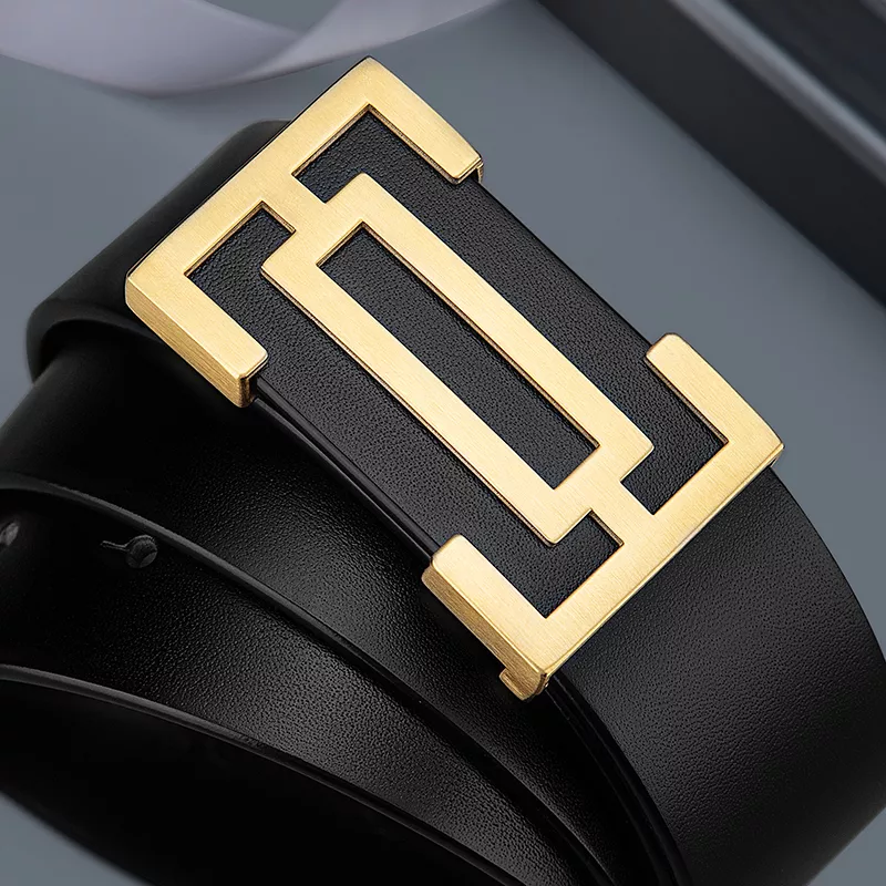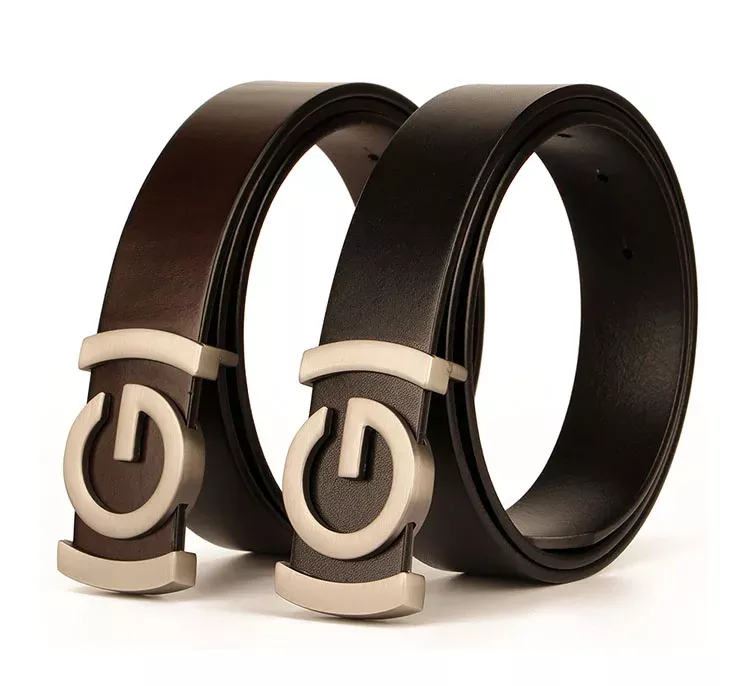 Luxury Wide Leather Belt with Metal G Buckle for Men