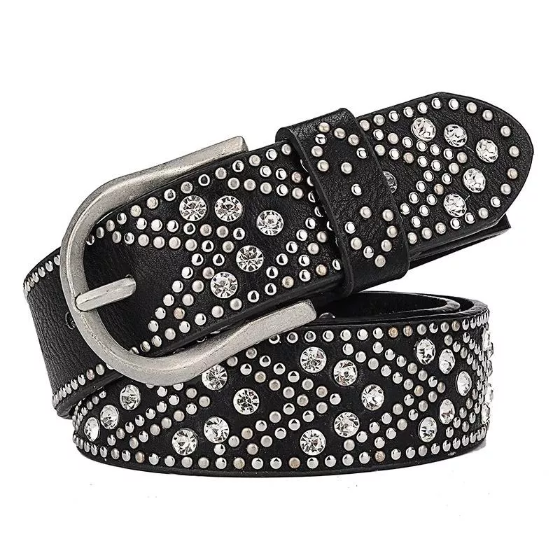 PU Leather Studded Belt with Rhinestones for Women