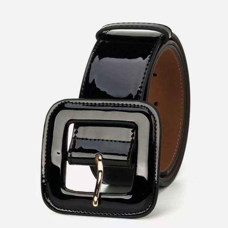 Women’s Wide Patent Leather Belt with Big Square Buckle for Dresses