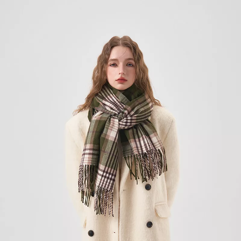 Our Green Plaid Scarf Shawl is more than just a fashion accessory—it’s a statement of comfort and style. Its soft cashmere material feels gentle against your skin, while the polyester adds strength and warmth for those cold  months. This scarf is perfect for layering over your favorite jacket, sweater, or even a dress, transforming your outfit from simple to stunning in seconds.