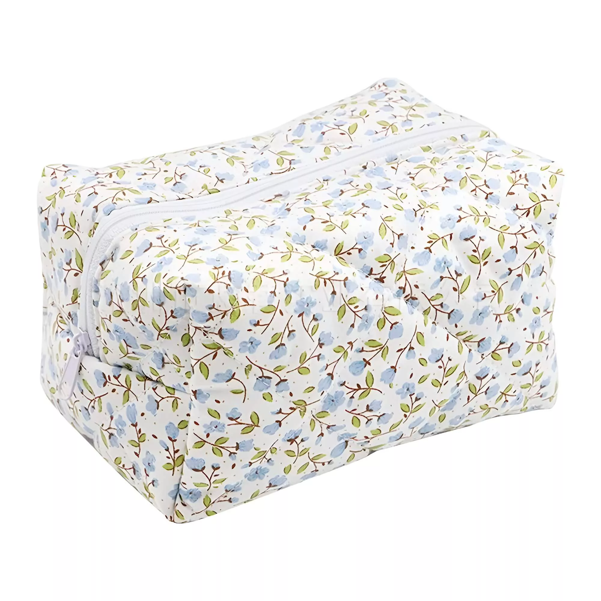 Floral Puffy Quilted Makeup Bag – Large Cosmetic Pouch for Travel & Storage