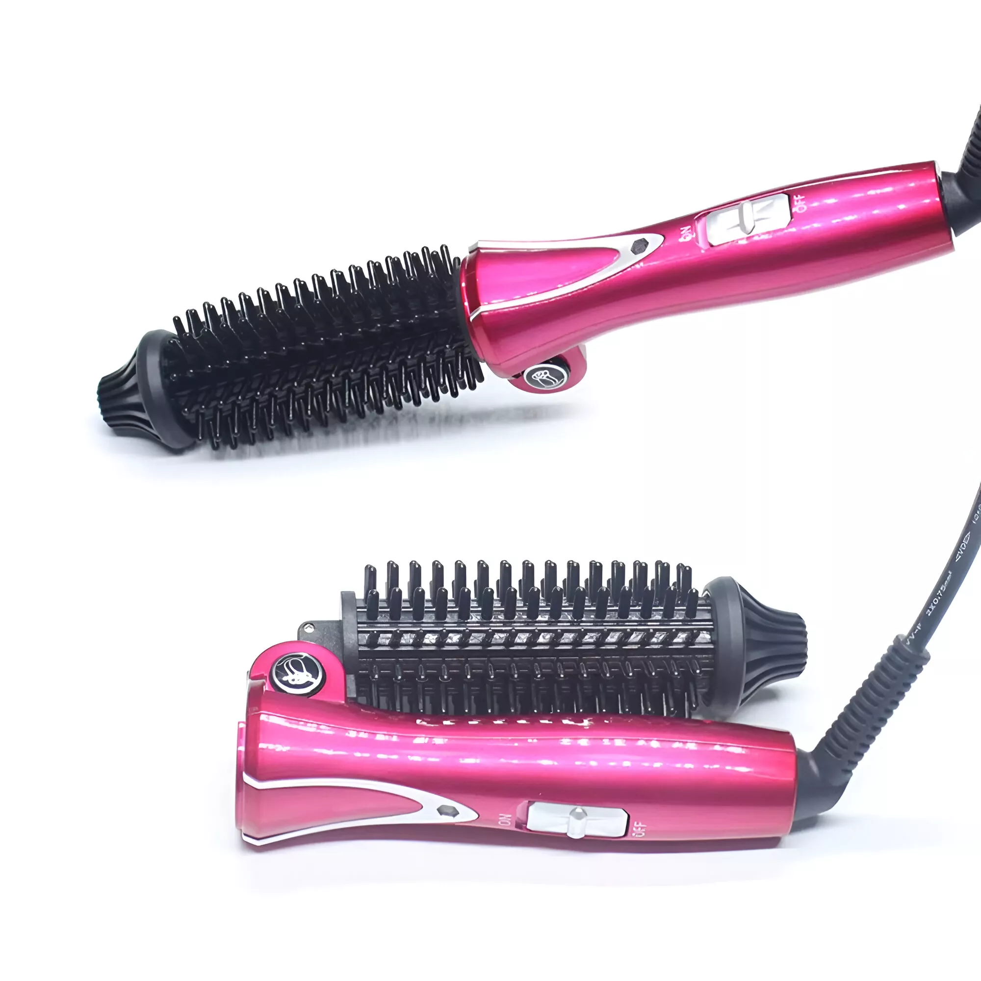 Foldable Hair Curler Brush with Ceramic Barrel and Anti-Scald Design