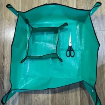 Made from high-quality PE film, our Foldable Planting Mat is not only wear-resistant but also fully waterproof. It features smartly designed edges with snaps on all four corners to securely lock and prevent spillage of water and soil. The mat’s green color blends perfectly with your garden or indoor setting, providing a size for every need – from compact 33x33cm to a generous 100x100cm.