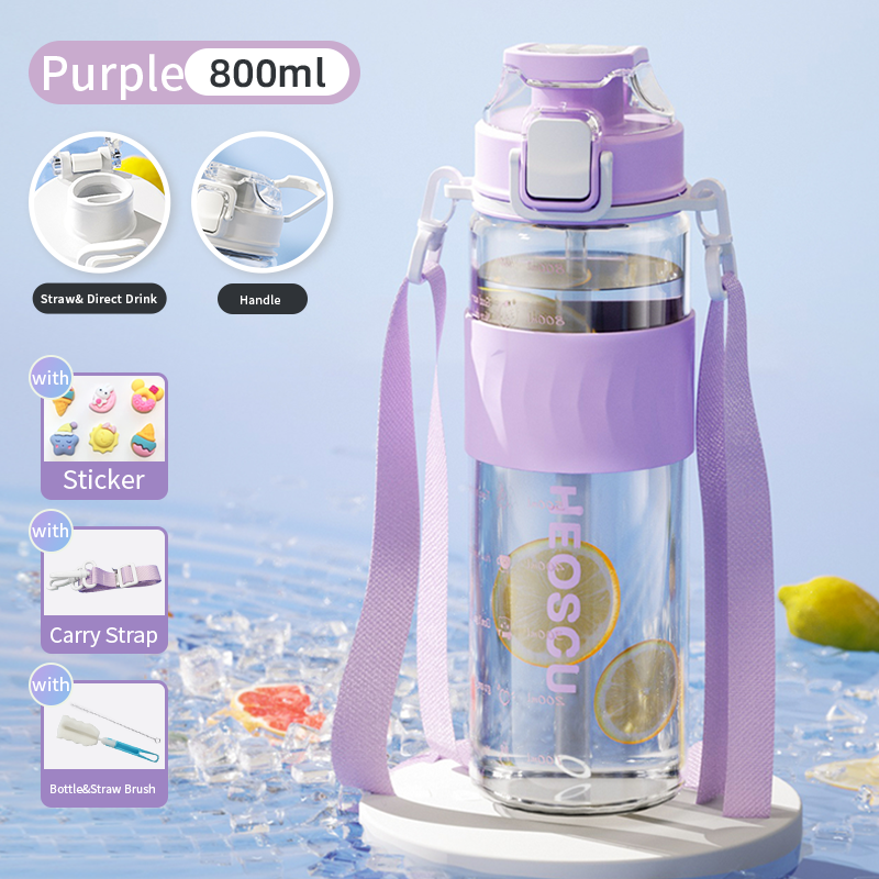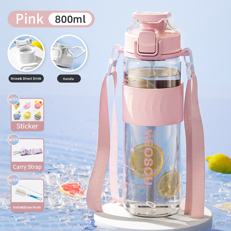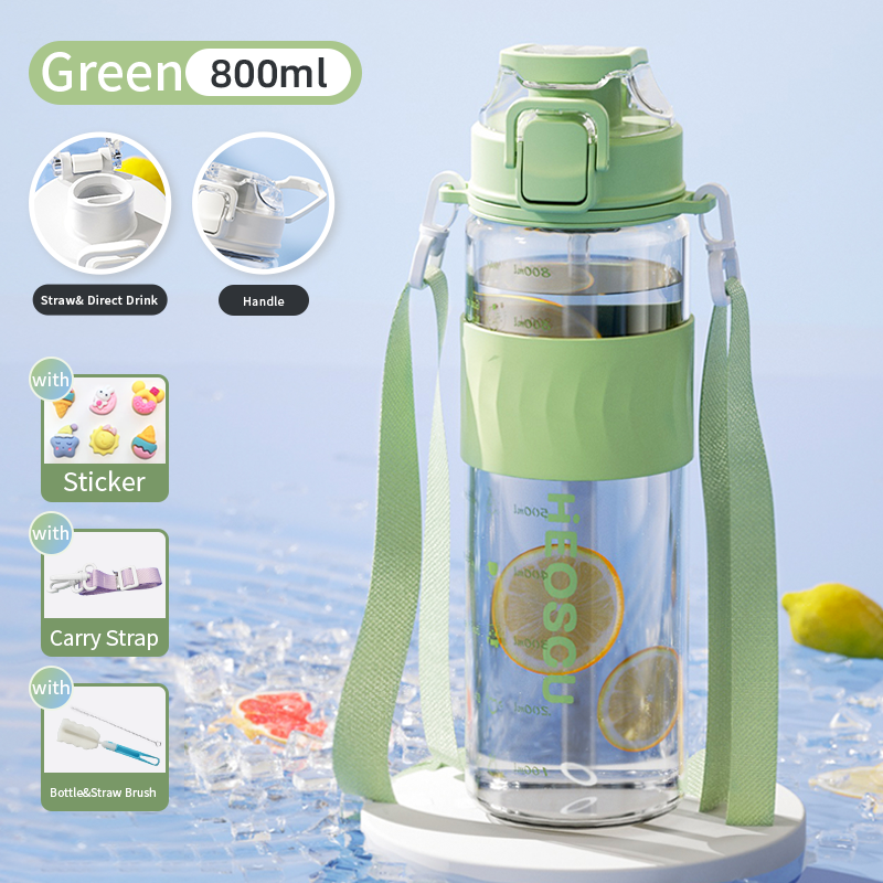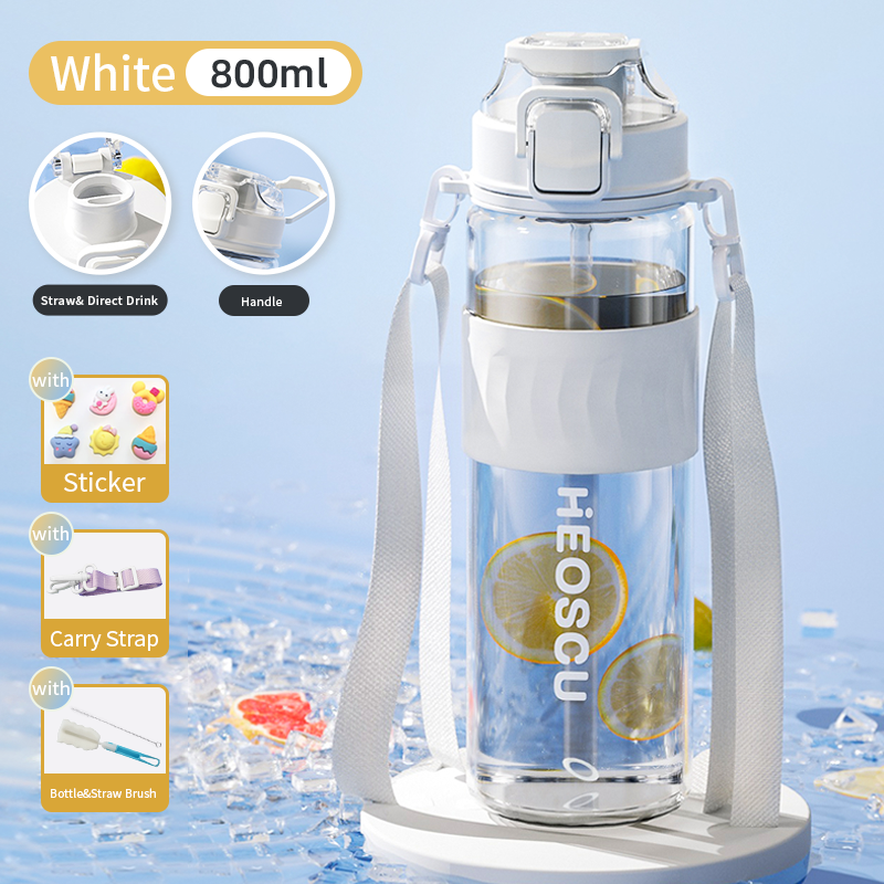What sets this bottle apart is its dual-drinking feature, allowing the choice between direct drinking and straw use, making it adaptable to your drinking preference. The robust high borosilicate glass not only withstands high temperatures but also contributes to the bottle’s elegant and clear appearance. Its large 800ML capacity is perfect for staying hydrated with fewer refills, suitable for long hikes, extended exercise sessions, or simply a busy day at the office.