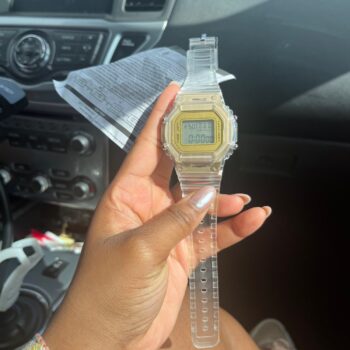 • Adjustable Band: Includes a transparent, fashionable acrylic band with a classic buckle clasp, ensuring a comfortable fit for all wrist sizes.