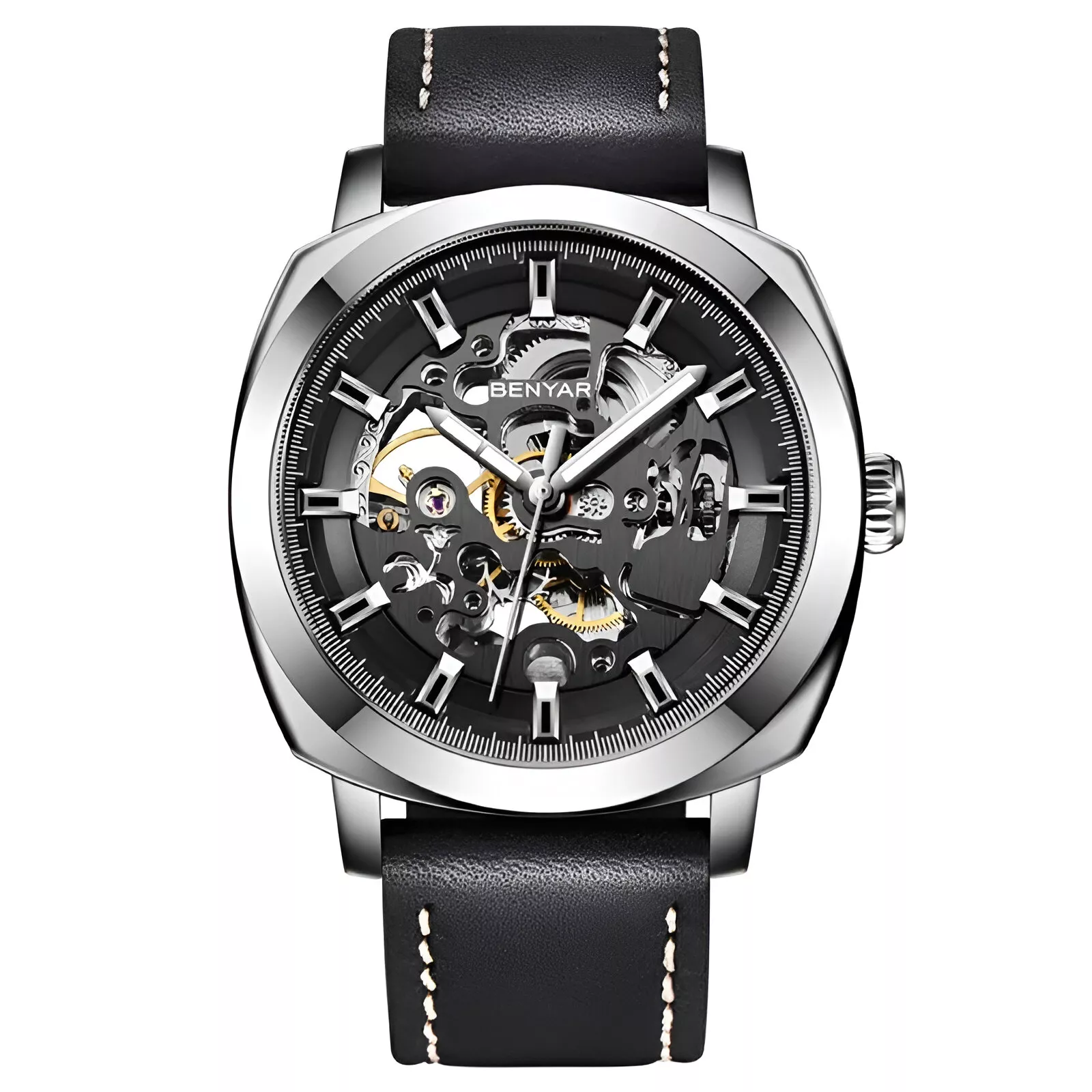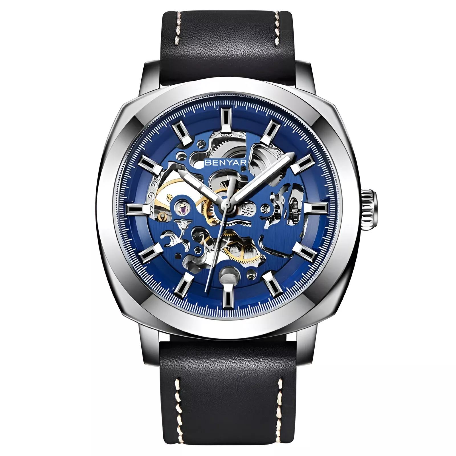 Luxury Mechanical Men’s Watch with Leather Strap and Waterproof Feature