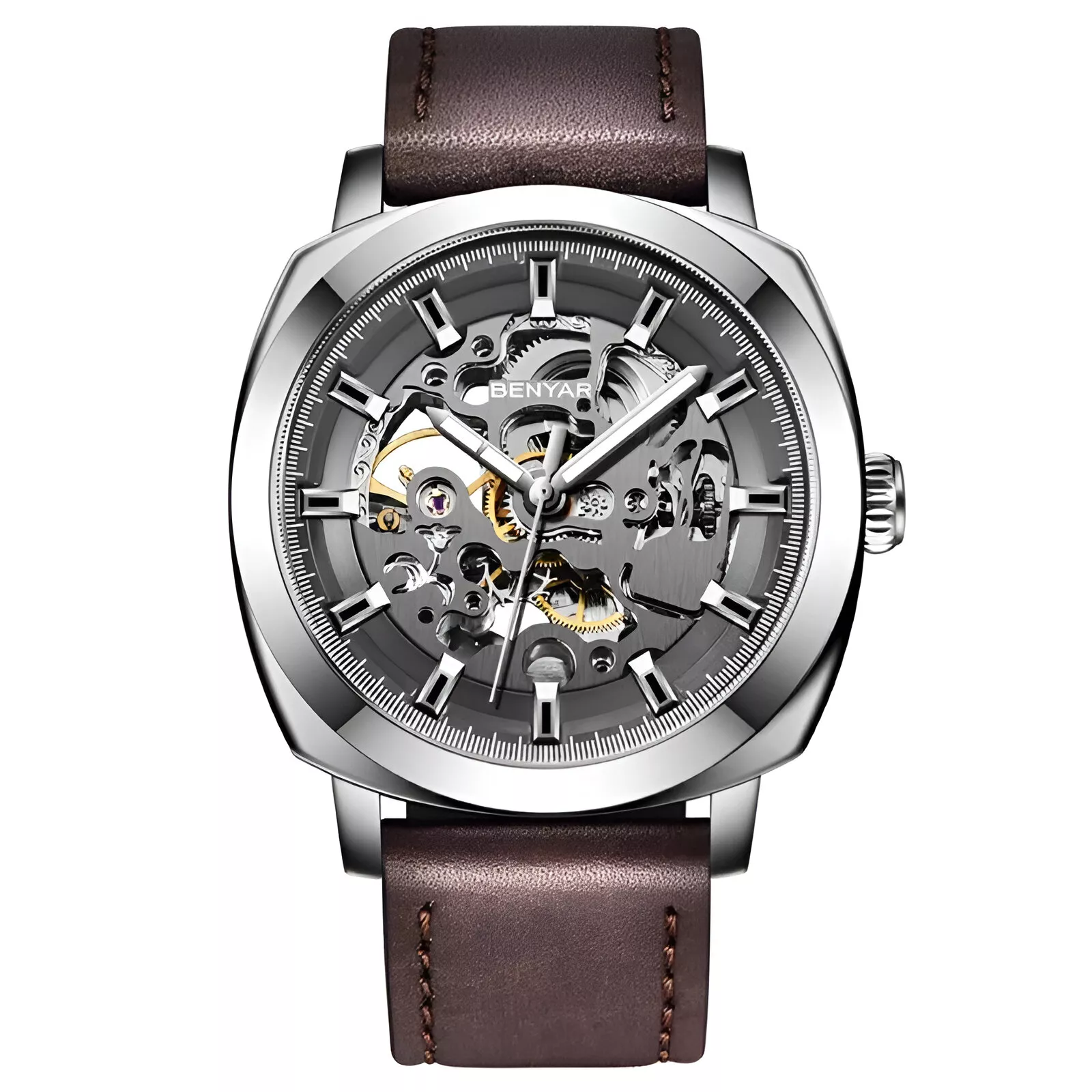 This timepiece combines the best of both worlds: timeless luxury and cutting-edge mechanical technology. With its precise automatic self-wind movement and stunning craftsmanship, this watch isn’t just a tool for telling time – it’s a statement piece. The water resistance feature and durable leather strap make it perfect for daily wear, ensuring you can look great and stay on schedule no matter where life takes you.