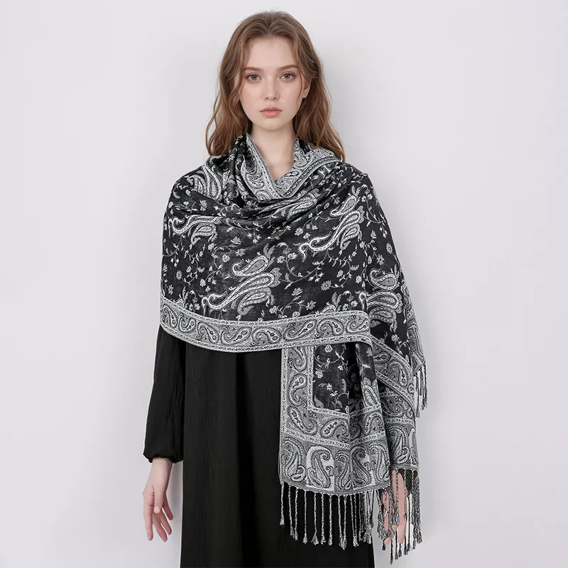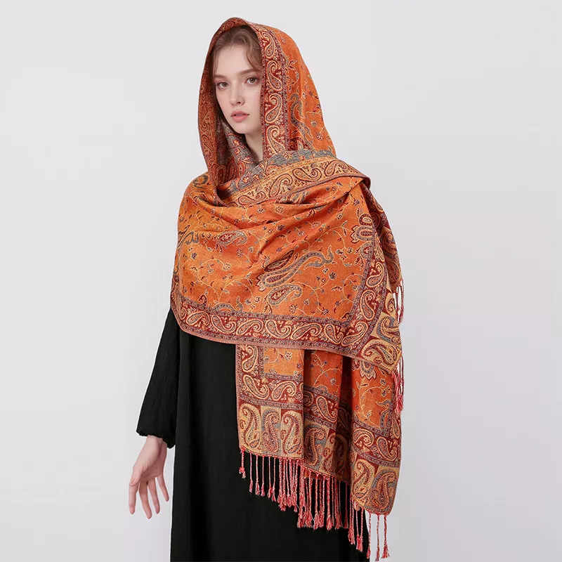 Wrap yourself in luxury with this exquisite Autumn Cashmere Pashmina Shawl. Designed for women who appreciate both style and comfort, this versatile scarf is the perfect blend of warmth, elegance, and sophistication. Whether you’re attending an evening party, a wedding banquet, or simply strolling through the city in the winter months, this luxury wrap adds a touch of glamour to any outfit. Featuring a beautiful cashew print in a rich paisley pattern, it is the perfect accessory to elevate your wardrobe year-round. Made with a mix of soft cotton and acrylic, this shawl is gentle on your skin while providing the warmth you need during colder seasons.
