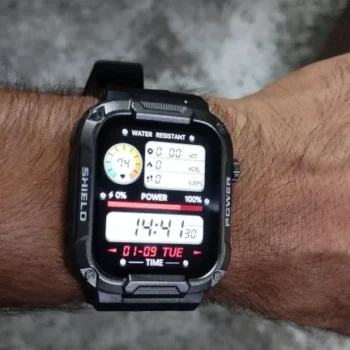 When I first set my eyes on this watch, I was immediately drawn to its rugged, tactical aesthetic. But as I started using it, I realized that this isn't just a pretty face. The seamless integration of fitness tracking features with everyday smartwatch utilities is nothing short of impressive. It's like having a personal trainer and an assistant rolled into one stylish package! Not only does it monitor my heart rate and count steps but also keeps me updated with all the important notifications from my phone. And did I mention how durable it is? This thing has been through rough hiking trips and intense gym sessions without showing any signs of wear or tear. All in all, a fantastic piece of technology that combines style, functionality and durability perfectly.