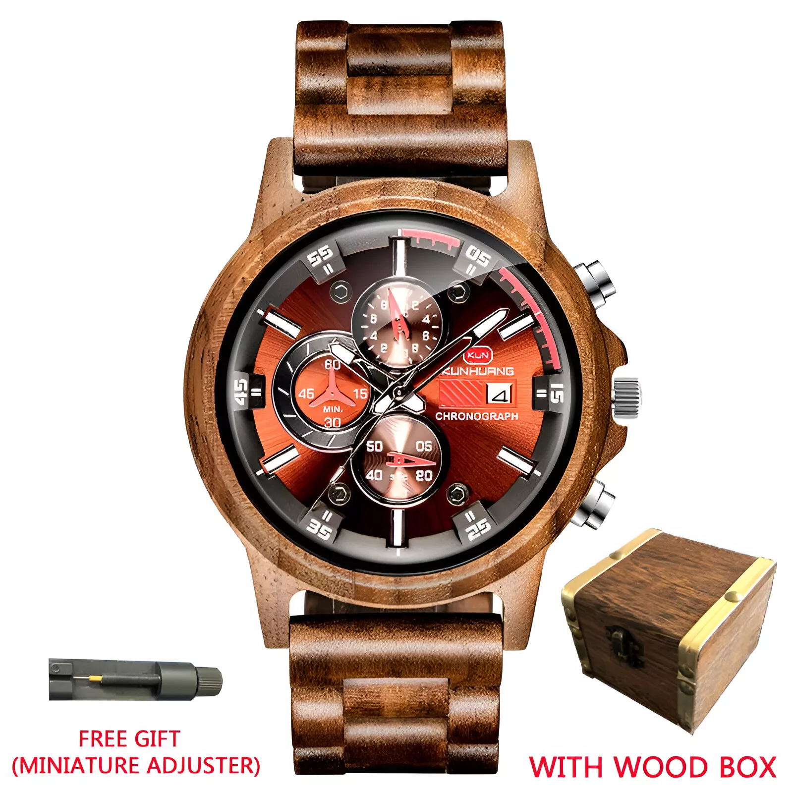 Ready to elevate your wrist game? This men’s wooden chronograph watch is the perfect combination of style, durability, and functionality. Don’t miss out on this unique timepiece—order yours today and experience the luxury of precision and natural design!