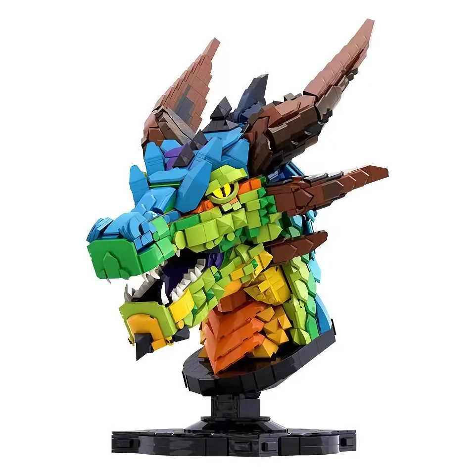 MOC Chinese Zodiac Dragon Head Statue Building Blocks Set