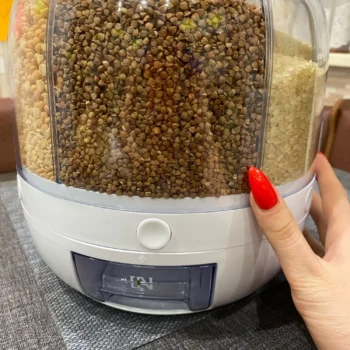 Step into a world of kitchen elegance with the Modern 6-Grid Rotating Grain Dispenser. Its compact design, crafted from high-quality materials, is a testament to durability and aesthetic finesse. The six individual storage cells effortlessly accommodate my diverse dry foods, maintaining freshness with its superior sealing capability. The unique rotating feature sets it apart, providing easy access and making my kitchen clutter-free. Choosing this dispenser was a conscious decision for a more organized and efficient kitchen space.