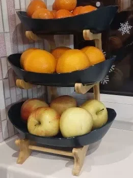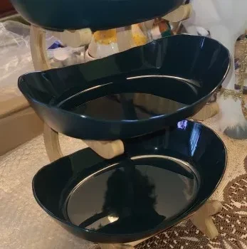 The cleverly designed shelves utilize vertical space, offering double and triple-layer configurations that can hold an impressive amount of snacks and desserts while maintaining a tidy tabletop. The solid pattern and oval shape bring visual appeal to the arrangement, making it a perfect fit for wooden tables and an excellent choice for special occasions or daily use.