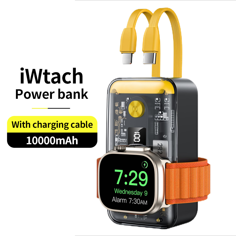 What sets our Portable 10000mAh Wireless PowerBank apart is its combination of versatility and convenience. The built-in cables mean you don’t have to carry extra cords, and the wireless charging feature for Apple Watches adds a layer of ease. The fast charging capability ensures that your devices are powered up quickly, saving you time and keeping you connected. Additionally, the LED digital display allows you to monitor the battery status easily, so you’re never caught off guard by a low charge.