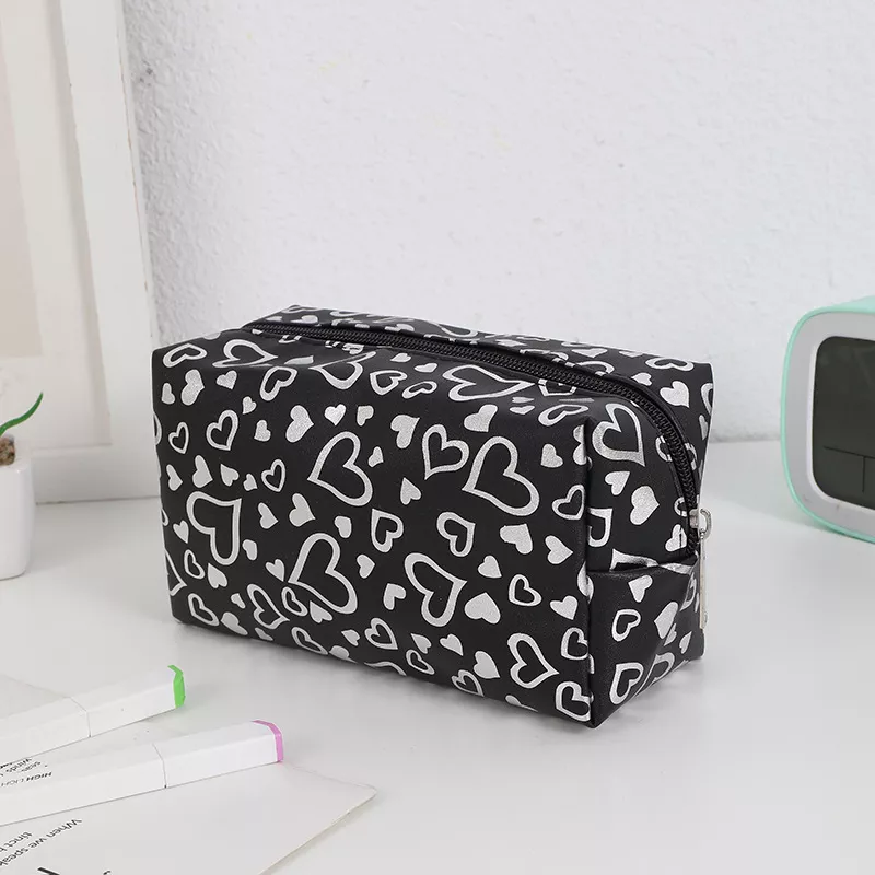 Introducing the perfect blend of style and functionality – this Portable PU Leather Makeup Bag is an essential accessory for every woman on the go. Designed with a cute heart pattern, this bag is ideal for storing your cosmetics, toiletries, and other personal items in one organized space. Its high-quality PU leather material ensures durability, while the spacious design makes it the perfect travel companion for both daily use and vacations.