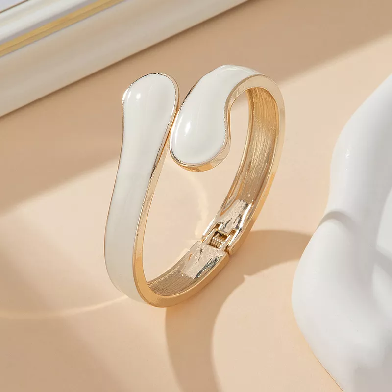 Transform your everyday look with this chic and modern Chunky Enamel Water Drop Geometric Cuff Bangle. Designed to add an edgy twist to any outfit, this cuff bangle combines striking geometric shapes and a smooth epoxy finish to create a truly unique accessory. Whether you’re dressing up for a night out or adding a trendy touch to a casual outfit, this bold bracelet will never go unnoticed.