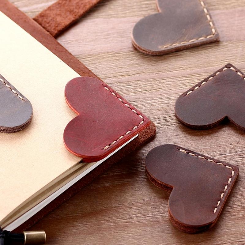 Handcrafted Leather Heart Bookmarks