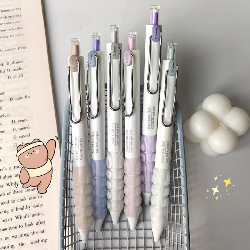 6PCS High Quality 0.5MM Twin Ball Gel Ink Pens for Students and Office Use