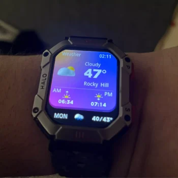 Constructed with a sturdy casing and a comfortable band, the watch is designed to withstand the rigors of daily use while maintaining a stylish look. It’s life waterproof, making it suitable for everyday activities like washing hands or rain exposure, though not for swimming or bathing.
